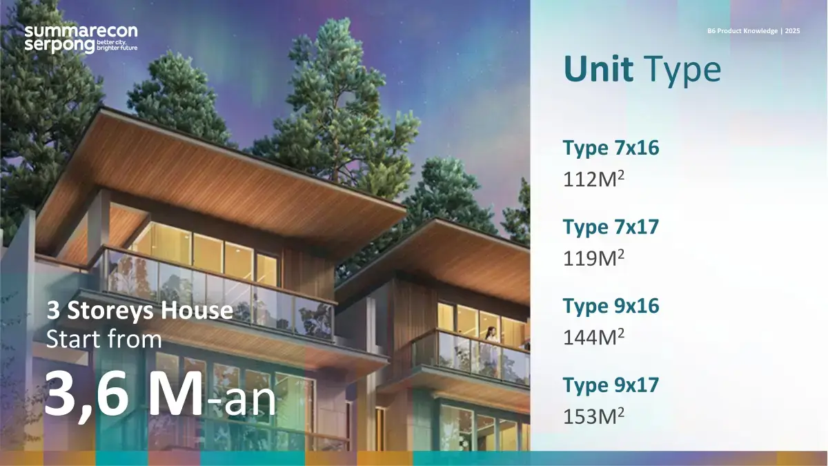 Summarecon Serpong pengembang ternama dan terpercaya kawasan Gading Serpong, Tangerang akan segera merilis penjualan perdana cluster terbarunya yaitu cluster Finore di tahun 2025 ini. Rumah baru Finore Summarecon Serpong di Gading Serpong ini menawarkan 3 lantai bangunan rumah, harga jual rumah mulai Rp. 3,6 milyaran*, desain rumah modern tropis kontemporer yang mewah dan elegan. Penggunaan materal alami seperti kayu, dan elemen modern kaca, beton memberikan kesan tropis yang mewah. Pada lantai 2 dan paling atas akan terdapat balkoni yang lebar, dengan jendela kaca yang lebar.